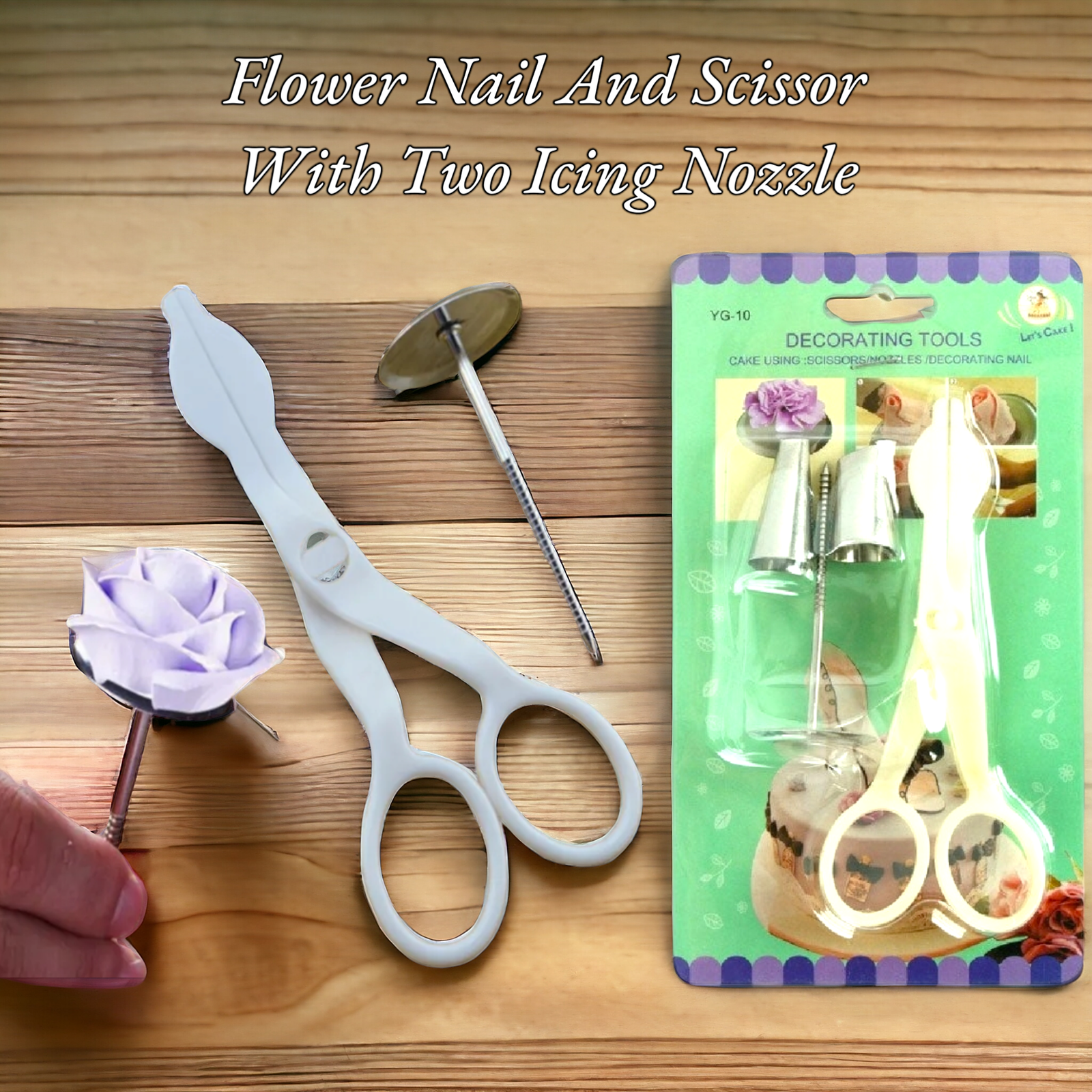 Flower Nail And Scissor With Two Icing Nozzle