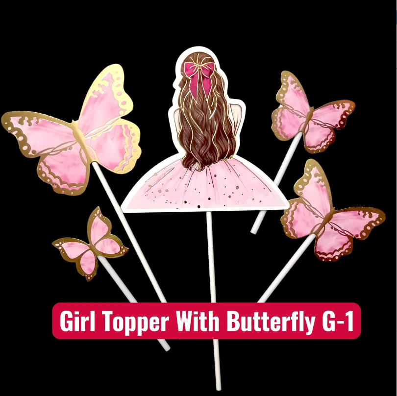 Beautiful Girl Cake Topper with Butterfly design, perfect for birthdays and themed celebrations. Adds a cute and elegant touch to any cake.