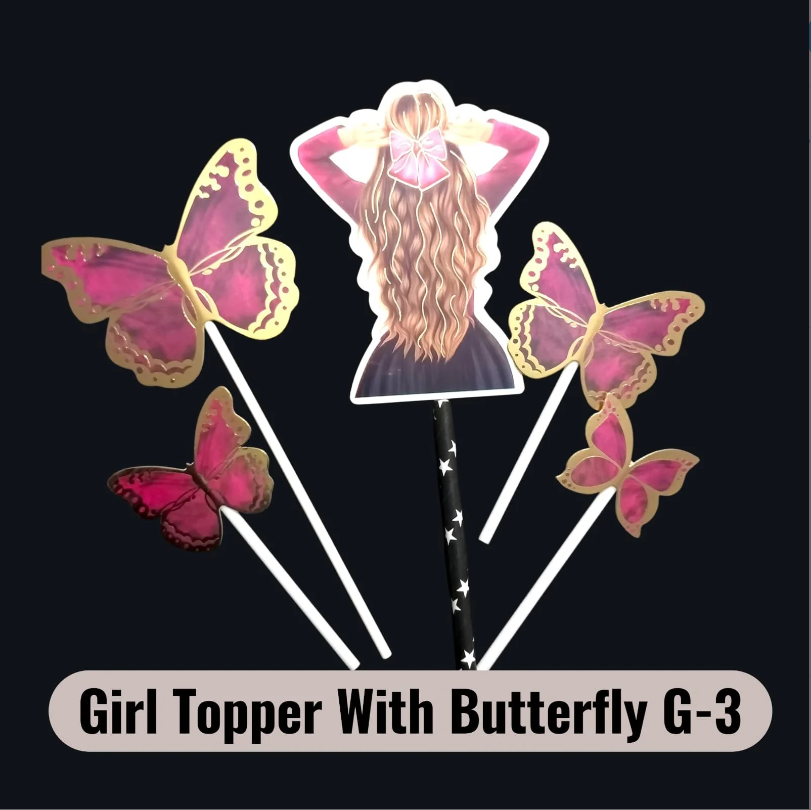 Beautiful Girl Cake Topper with Butterfly design, perfect for birthdays and themed celebrations. Adds a cute and elegant touch to any cake.