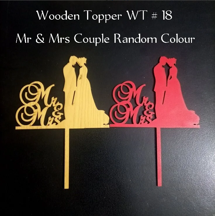 The Mr & Mrs design represents love, unity, and togetherness, while the random color finish adds a unique and stylish appearance to every piece. Each topper comes in an attractive color variation, making it perfect for customers who enjoy a surprise element or want something slightly different from standard wooden toppers.